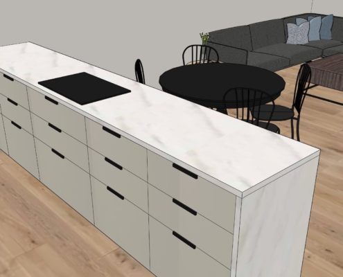 Eignin er kædd með ljósum steinfíber plötum frá Equitone og er með ál/tré gluggum. Fyrir vikið er húsið mjög viðhaldslétt. Innréttingar frá HTH/Ormsson ásamt innbyggðum ísskáp og uppþvottavél. Gólfhiti og verður gólfum skilað með harðparketi nema í votrýmum þar sem eru flísar. Innihurðar frá Birgisson. Fataskápar í svefnherbergjum.
